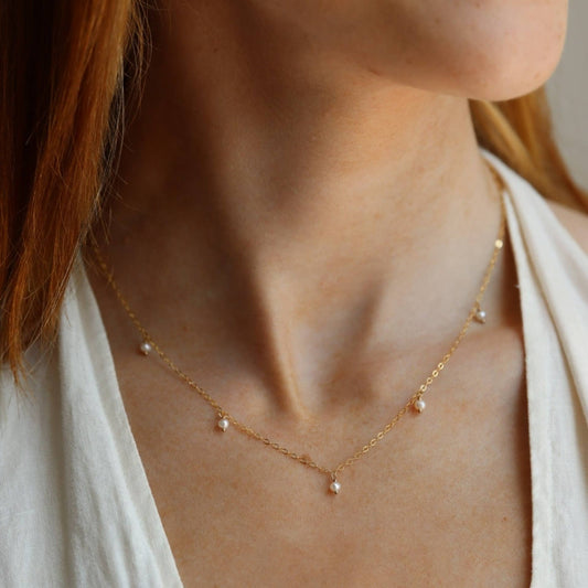 Delicate Pearl Necklace | 14k Gold fill or Sterling Silver