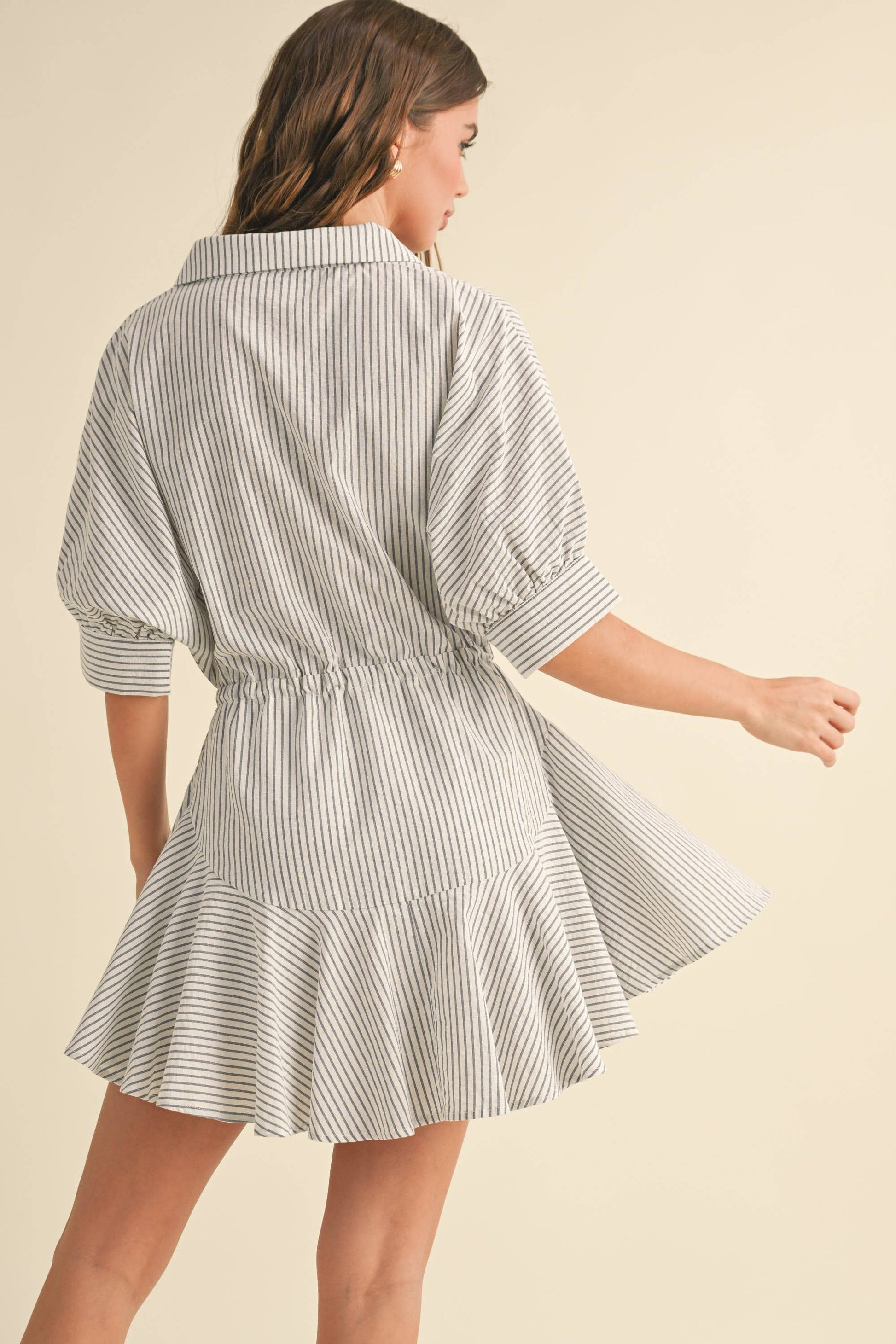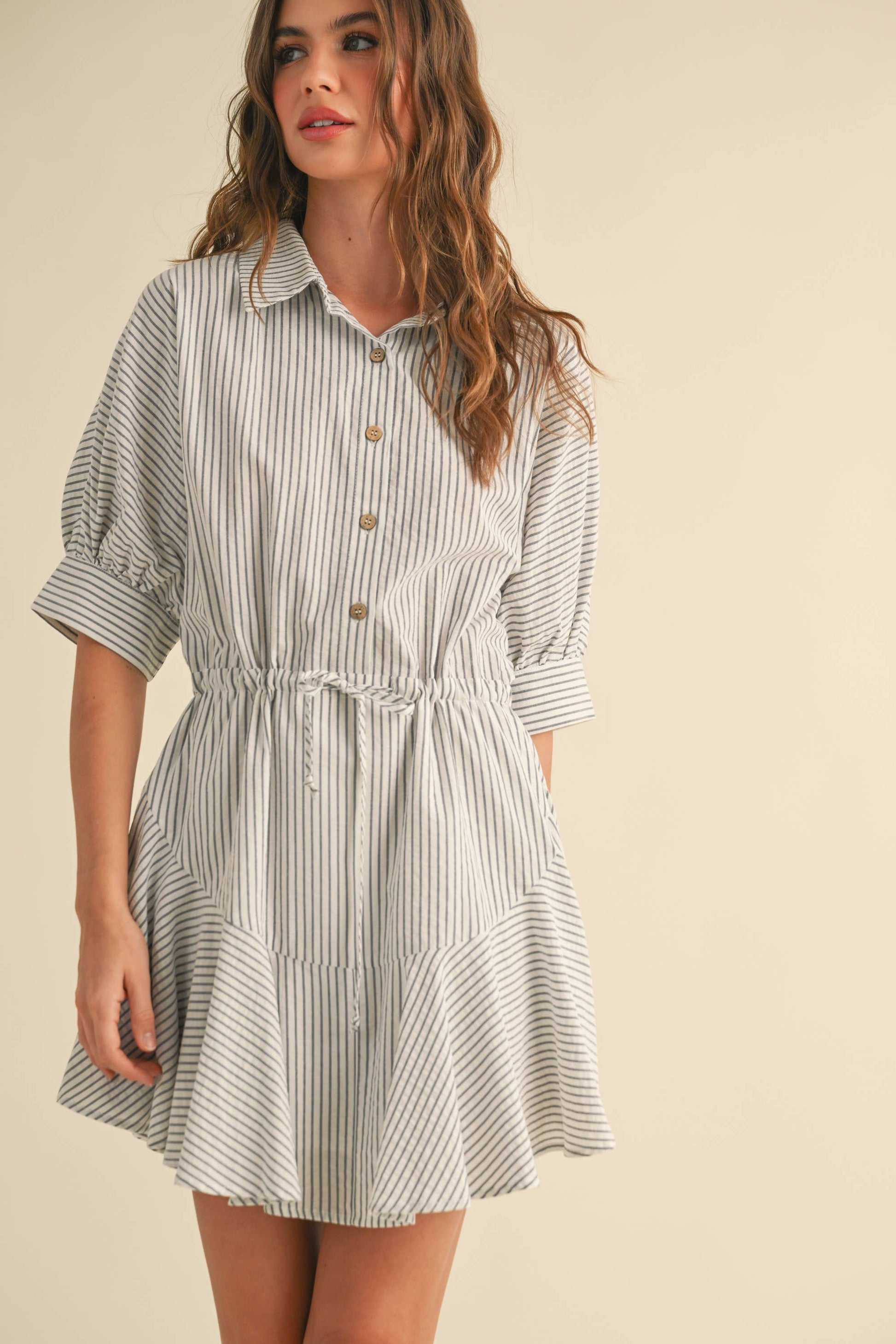 STRIPED PATTERN BUTTON-DOWN SHIRT DRESS