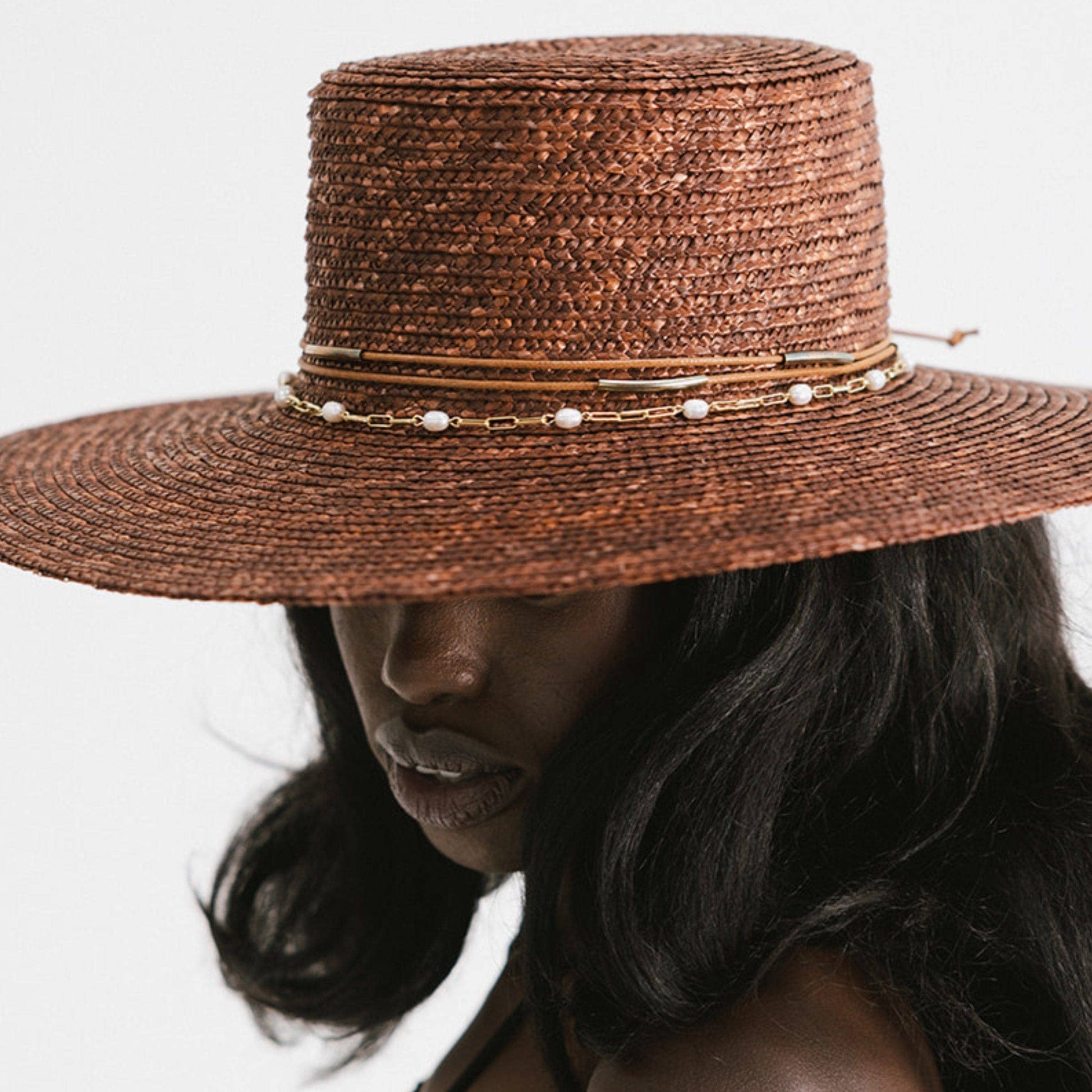 Genuine pearls paired with a paperclip chain add the perfect touch of sophistication to any brim with this delicate luxe band that can also double as necklace. This band comes in one size and adjusts to fit any hat.